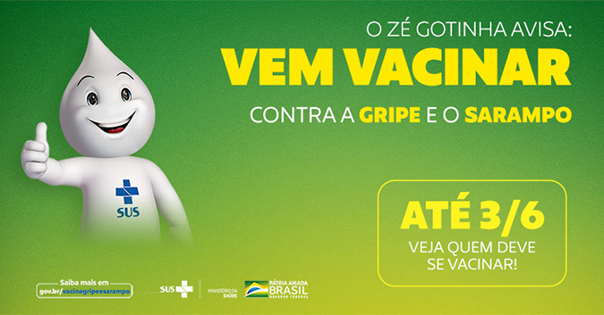 A campanha de vacinação contra a gripe e o sarampo segue até 3/6.