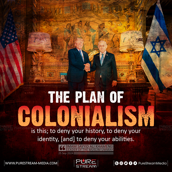 the plan of colonialism | Divulgação/Pure Stream | ⇅ ᎒ Imam Sayyid Ali Khamenei, 25/09/2024: “(…) The plan of colonialism is this; to deny your history, to deny your identity, [and] to deny your abilities. (…)” ░░░░░░░░░░░░ ミ Por aquí pasó:Cara OcidentalizanteA vida privada tornou-se produto.¡El Pueblo cubano dijo no!'Enclave Política' con Presidente Rafael Correa