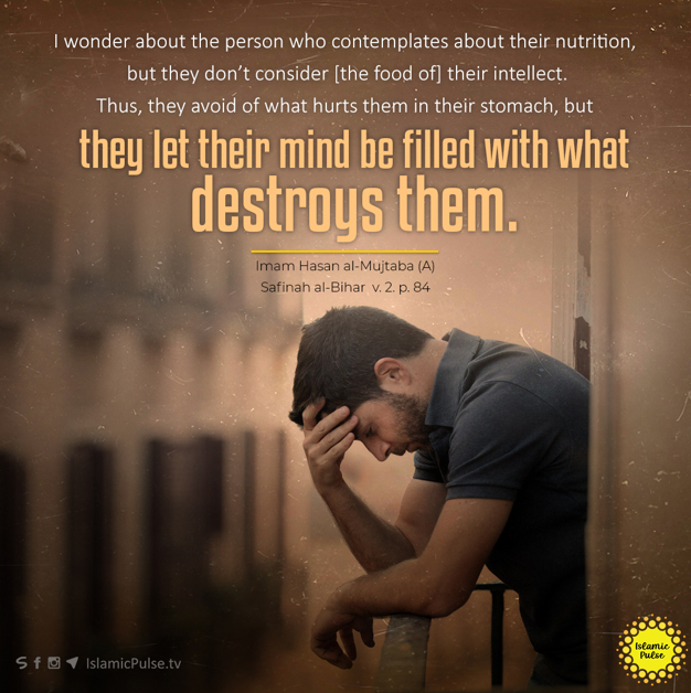 “I wonder about the person who contemplates about their nutrition, but they don’t consider (the food of) their intellect. Thus, they avoid of what hurts them in their stomach, but they let their mind be filled with what destroys them.”