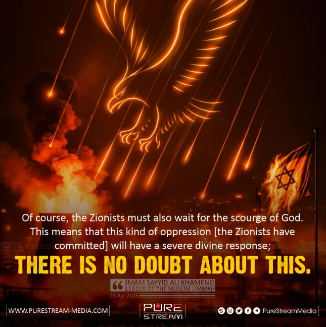 “(…) Of course, the Zionists must also wait for the scourge of God. This means that this kind of oppression [the Zionists have committed] will have a severe divine response; there is no doubt about this. (…)”