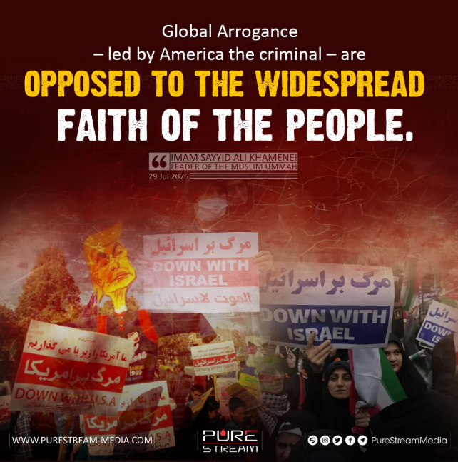 “(…) Global Arrogance – led by American the criminal – are opposed to the widespread faith of the people. (…)”
