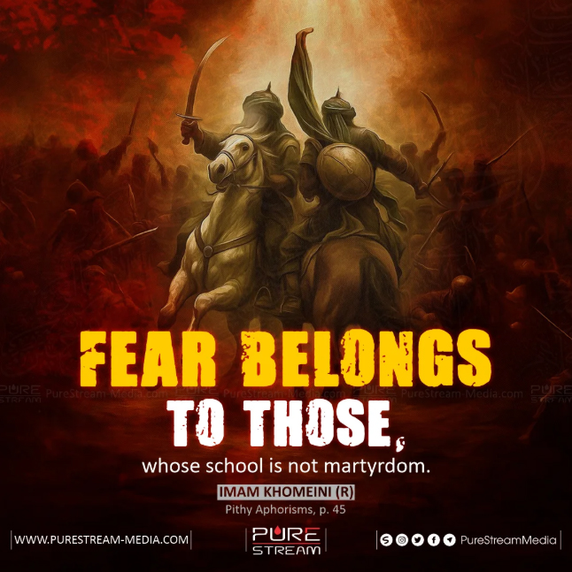 Not martyrdom. | Divulgação/Pure Stream | ⇅ “(…) Fear belongs to those, whose school is not martyrdom. (…)” _ Imam Khomeini (R) – Pithy Aphorisms, p. 45. ░░░░░░░░░░░░ ミ Por aquí pasó:A Questão Palestina {3}Tudo mudaRemember tomorrowMas quando uma guerra termina? {5}