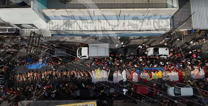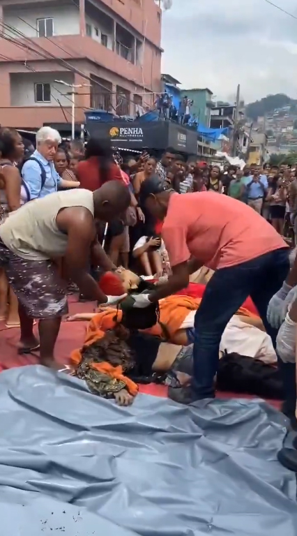 (Na 1ª imagem, uma cabeça humana posta em mochila, degolada pelo Terrorismo de Estado e ato festejado por milhões de BBBrazzzzzucas. Na 2ª, do alto a fila de eliminados. Outubro de 2025. Este é o mesmo País que vetou Venezuela/Nicarágua dos *R*CS. Polarizada “de um lado só” entre o Capitão e o Estadista. DEUS É BRASILEIRO!)