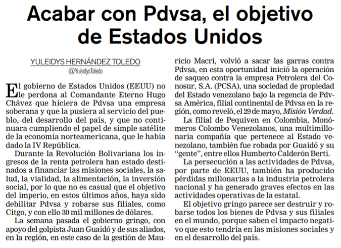 Ladrões-água de óleo ↧ Brazzzzzileiros e Brazzzzzileiras, trocar Pdvsa por Petrobras, e para país de calças baixas para o Imperialismo, verificar se rima com “Privatização”. (Ricardo S.) ⇅ (Clipping do “Diario VEA” – Yuleidys Hernández, 05/06/2019) • ░░░░░░░░░░░░ ミ Por aquí pasó:El viento trae una coplaQue viva la Revolución風が吹いているSe não for a favor, cale-se.